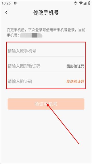 5、輸入原手機(jī)號、圖形驗證碼和短信驗證碼,點擊驗證手機(jī)號,完成手機(jī)號修改。