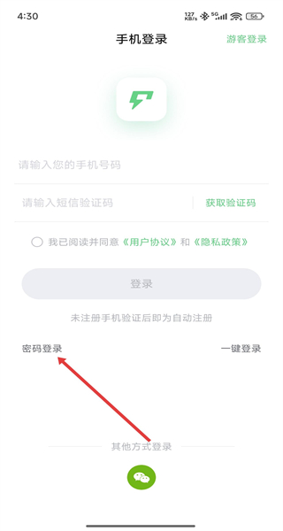 2、在登錄界面,點(diǎn)擊密碼登錄選項(xiàng),切換到密碼登錄模式。