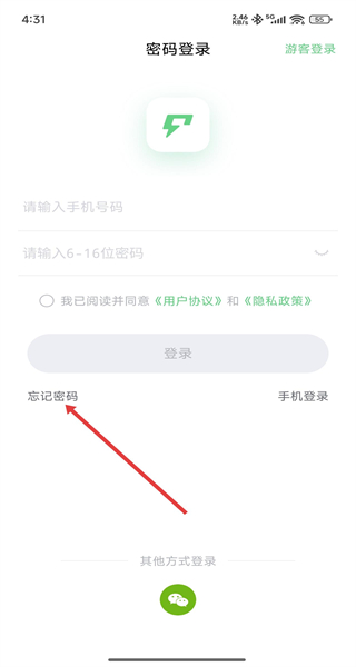 3、在密碼登錄界面,點(diǎn)擊忘記密碼選項(xiàng),進(jìn)入忘記密碼界面。