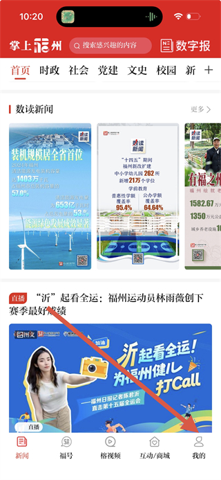 1、在掌上福州app首頁點擊我的選項,進(jìn)入個人頁面。