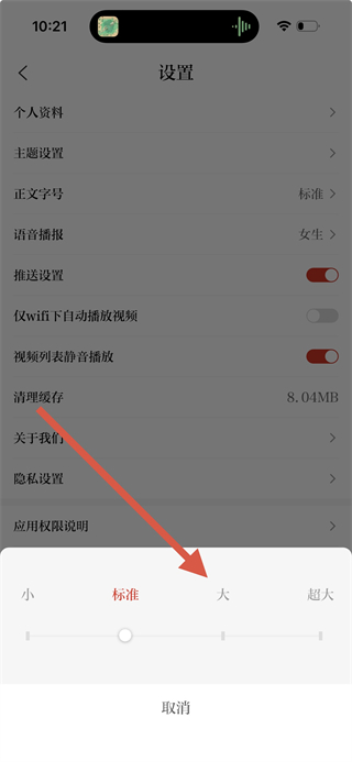 4、在字號選擇框中,選擇小、標(biāo)準(zhǔn)、大或超大字號,即可完成字體大小調(diào)整。