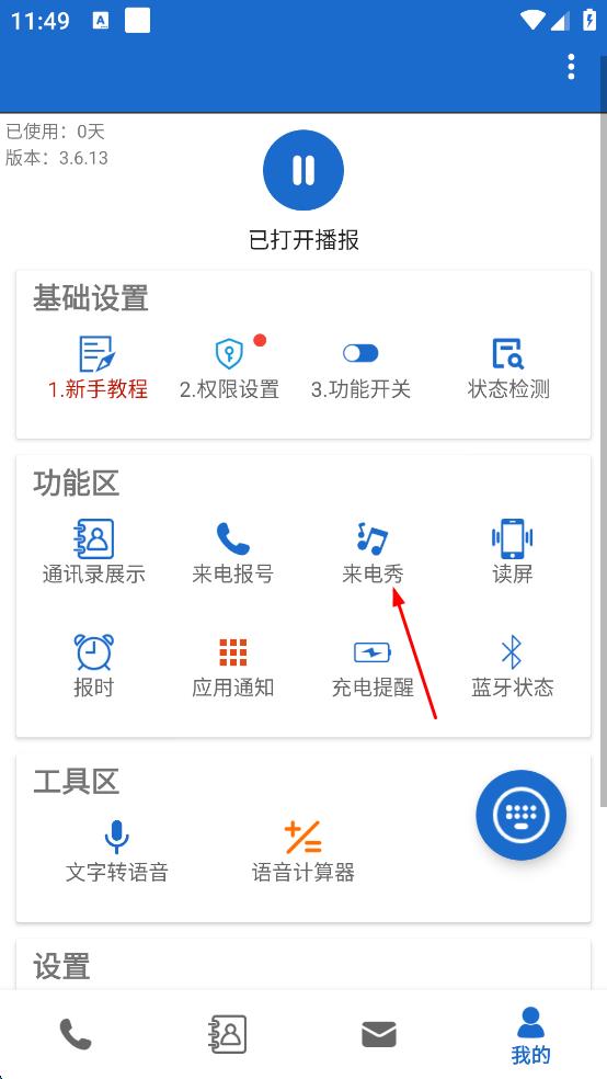 2、進入我的頁面后,在功能區(qū)點擊來電秀。