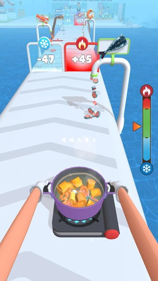 在游戲中玩家作為一名餐館的廚師,需要收集各種各樣的食材,再通過道路上的溫度控制來烹飪料理,通過不斷拾起地面上需要食材,來提高美食的完成度,不同的食材對(duì)于溫度的控制更是需要把控清楚,在玩家的屏幕右邊有著一條進(jìn)度條,玩家可以通過判斷這個(gè)進(jìn)度條來分辨食材是否需要添加和加熱,盡情的來打造你的餐館吧,提高你的知名度。