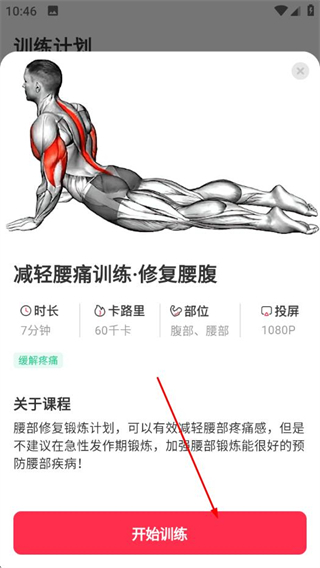 3、進(jìn)入訓(xùn)練項(xiàng)目詳情頁面后,點(diǎn)擊開始訓(xùn)練,即可進(jìn)行視頻跟練。