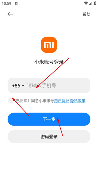 2、在我的頁面點擊未登錄區(qū)域,進(jìn)入小米賬號登錄頁面。
