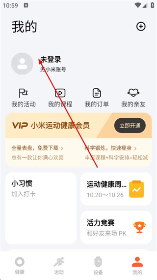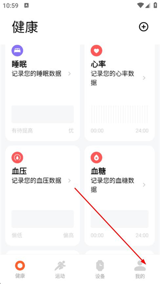 1、在小米運(yùn)動健康的健康頁面,點擊右下角我的選項,進(jìn)入個人頁面。
