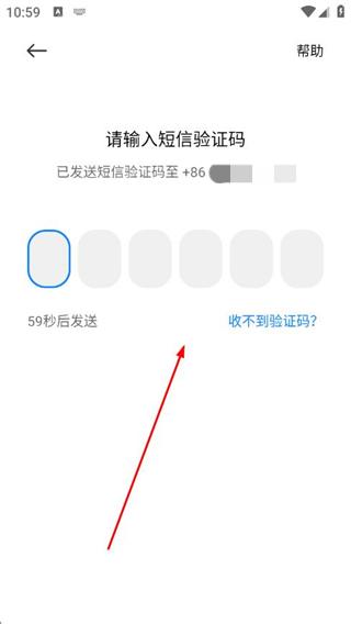 4、在短信驗證碼輸入頁面,輸入收到的驗證碼,即可完成賬號登錄。