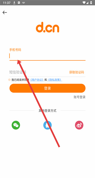 3、在跳轉(zhuǎn)到登錄頁面中時(shí),點(diǎn)擊輸入框填寫要登錄的手機(jī)號進(jìn)行獲取驗(yàn)證碼。