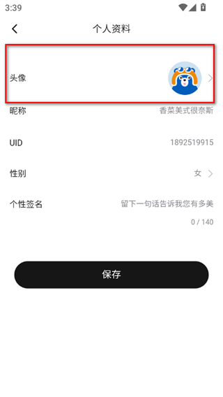 4、在個人資料頁面中點擊頭像選項,按提示選擇新頭像并保存即可修改頭像。