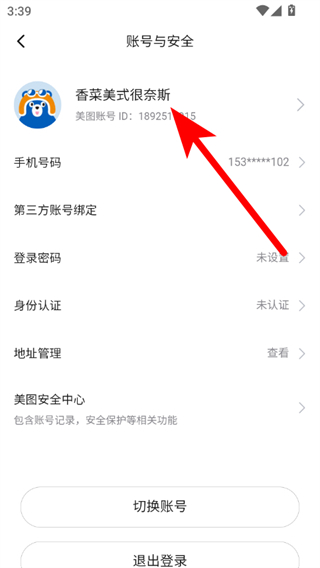 3、在賬號頁面中點擊賬號名稱,進入個人資料頁面。