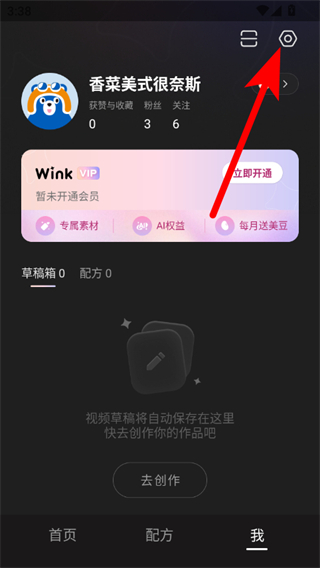 1、打開WinkAPP,點擊右下角我,進入個人頁面后點擊右上角設(shè)置圖標。