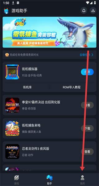 1、在游戲助手APP首頁點擊右下角“我的”,進(jìn)入個人中心頁面。
