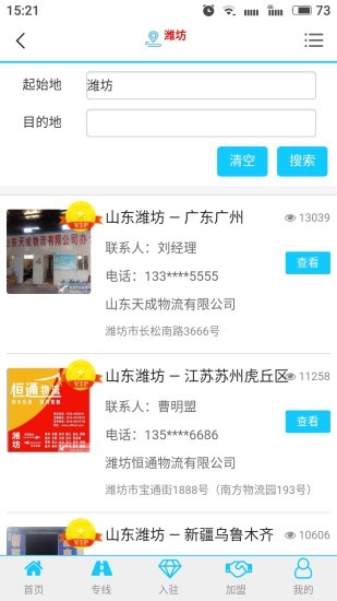 2、輸入城市地點(diǎn)名稱查詢當(dāng)?shù)氐呢浽?,在線可以好看每個(gè)貨源的詳情。