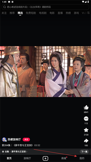 1、打開西瓜視頻的應(yīng)用APP,在精選下點(diǎn)擊我的按鈕。