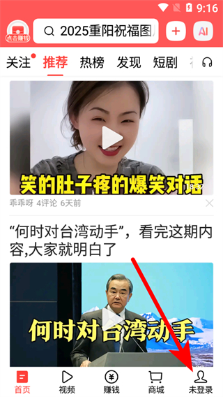 1、在今日頭條首頁,點擊右下角未登錄選項,進入個人界面。
