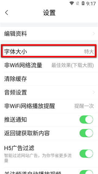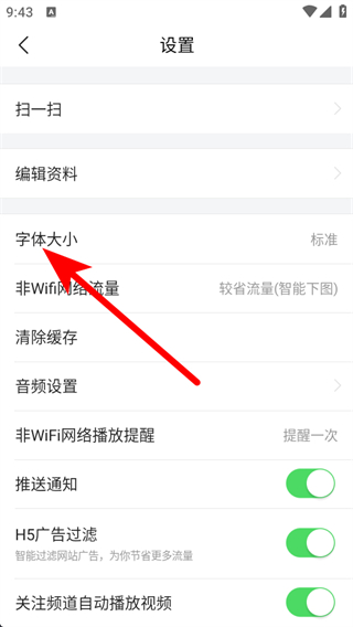 3、在設(shè)置頁面,點擊字體大小選項,進入字體大小預(yù)覽界面。