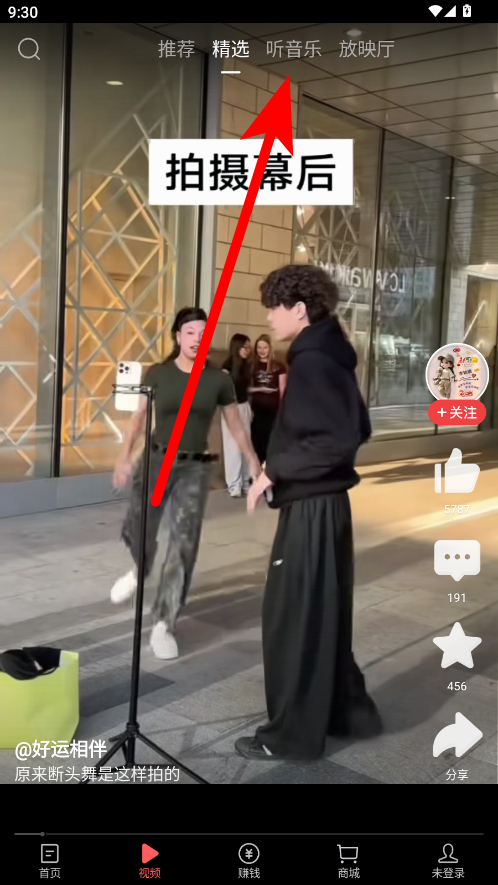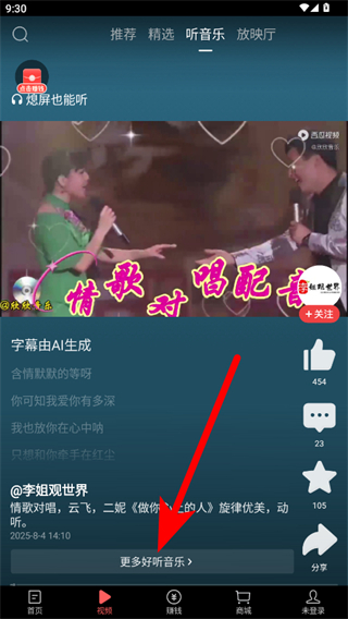 2、在視頻界面,點擊聽音樂選項,進入音樂界面。