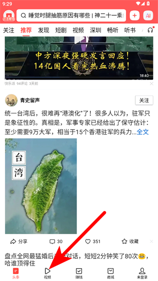 1、在今日頭條首頁,點擊下方視頻選項,進入視頻界面。