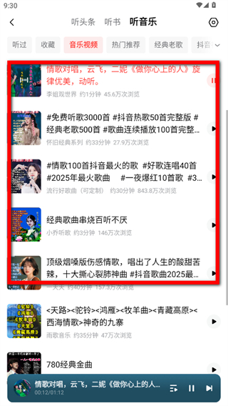 4、在音樂視頻列表頁面,點擊目標音樂視頻即可開始聽音樂。
