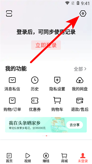 1、進入頭條搜索極速版APP后,點擊右下角我的頁面,點擊右上角設(shè)置圖標,進入設(shè)置的界面。