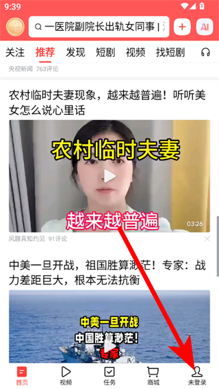 1、在今日頭條首頁,點擊右下角未登錄選項,進入個人頁面。