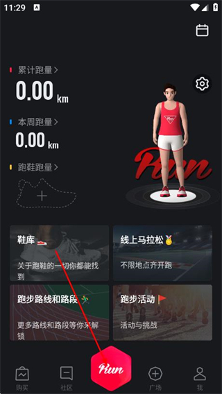 1、打開(kāi)悅跑圈APP,點(diǎn)擊底部紅色Run,進(jìn)入跑步設(shè)置頁(yè)面。