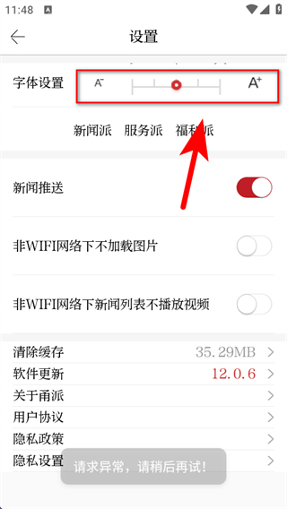 3、在字體設(shè)置區(qū)域,可以選擇通過拖動滑塊來調(diào)整字體大小。