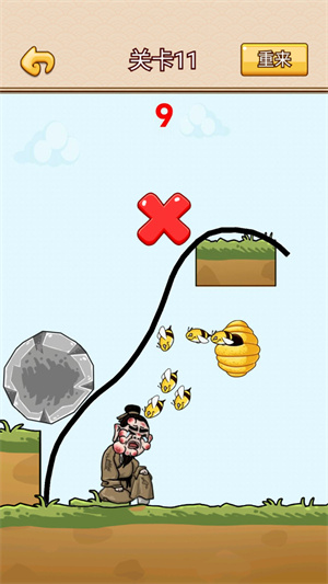 需要玩家去觀察場景中的布置來進(jìn)行畫線,拯救面前的人物角色,來防止他受到傷害,導(dǎo)致自己失敗需要重新來過。