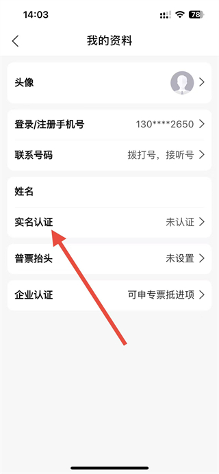 3、在我的資料頁(yè)面,點(diǎn)擊實(shí)名認(rèn)證選項(xiàng)進(jìn)入認(rèn)證流程。