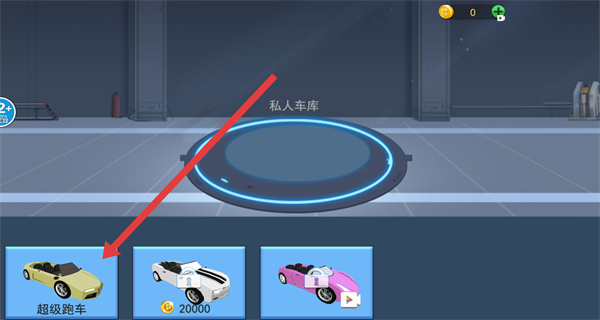 2、在私人車庫界面,選擇可使用的車輛如超級(jí)跑車。