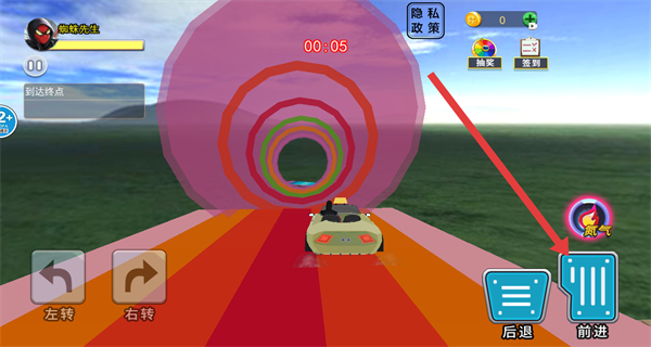 4、通過右下角的前進(jìn)按鈕控制車輛前進(jìn),利用左轉(zhuǎn)右轉(zhuǎn)按鈕調(diào)整方向,朝著終點(diǎn)前進(jìn),完成賽道挑戰(zhàn)。