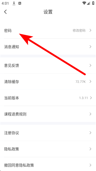 3、在設(shè)置界面里,點擊密碼選項,進(jìn)入修改密碼頁面。