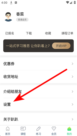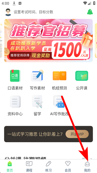 1、打開趴趴雅思APP,點擊底部導(dǎo)航欄的我的選項,進(jìn)入個人頁面。