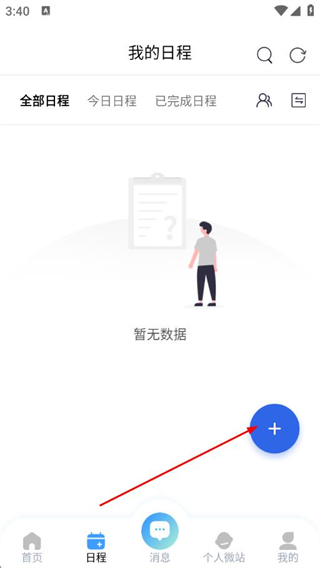 2、在日程頁面點(diǎn)擊藍(lán)色+,進(jìn)入新建日程頁面。