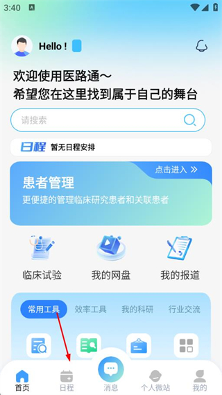 1、打開醫(yī)路通APP,點(diǎn)擊底部日程。