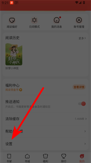 2、在個(gè)人中心界面,點(diǎn)擊設(shè)置選項(xiàng),進(jìn)入設(shè)置頁(yè)面。