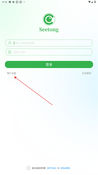 1、打開seetong的應(yīng)用,點擊左側(cè)用戶注冊的按鈕。