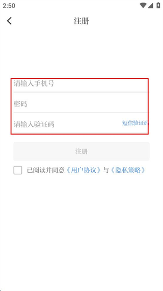4、勾選已閱讀并同意用戶協(xié)議與隱私策略,點擊注冊。