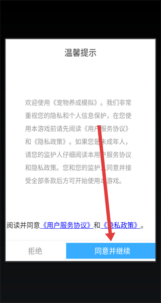 1、在溫馨提示彈窗中,點擊同意并繼續(xù),確認接受《用戶服務協(xié)議》和《隱私政策》后進入。