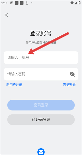 3、在切換到密碼登錄界面,點擊輸入框輸入手機號,填寫密碼。
