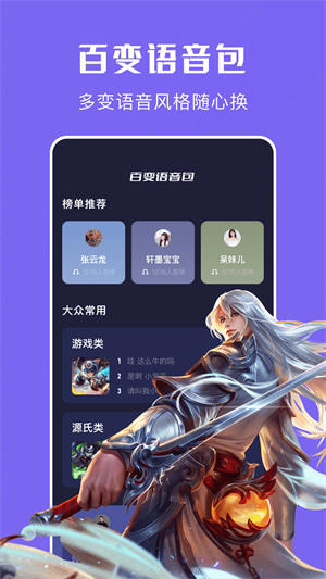 - 豐富的語音包免費(fèi)使用,一鍵點擊應(yīng)用,可以在多個場景使用,輕松更換說話音質(zhì),可隨時切換聲音;