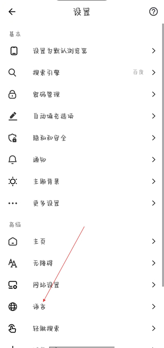 4、在語言頁面中,點擊當(dāng)前設(shè)備語言選項。