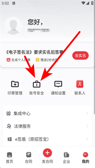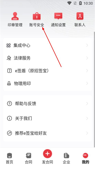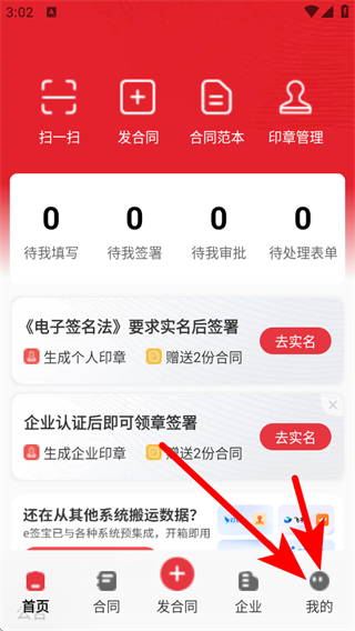 1、在e簽寶的首頁,需要點擊底部我的按鈕,進(jìn)入個人頁面。