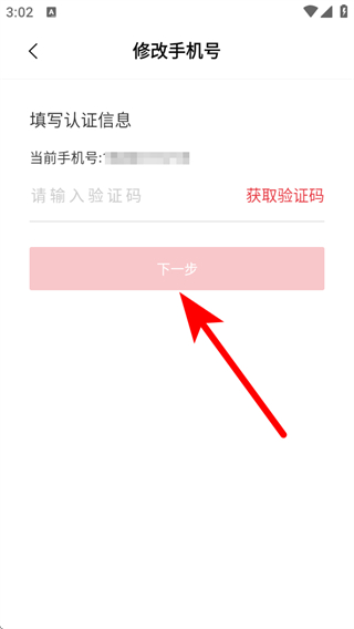 4、在修改手機(jī)號頁面,輸入驗證碼后點擊下一步,按照提示完成更換。