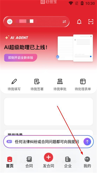 1、打開e簽寶APP,需要點擊右下角我的按鈕,進(jìn)入個人頁面。