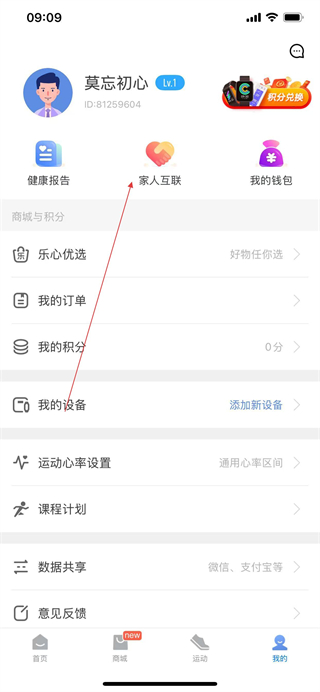 2、在我的頁面,點擊家人互聯(lián)選項。