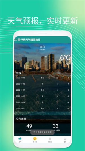 - 實(shí)時(shí)更新天氣預(yù)報(bào)信息,每天帶來(lái)最新的天氣,輕松掌握當(dāng)天的天氣、空氣、PM指數(shù);