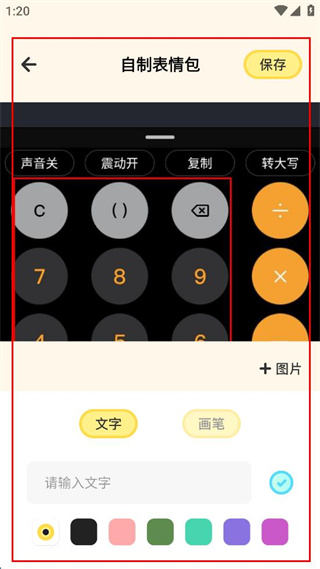 4、可添加文字、使用畫筆等進(jìn)行編輯,完成后點(diǎn)擊保存,完成表情包制作。