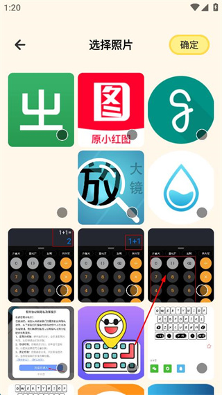 3、在選擇照片界面,選擇想要的照片后點(diǎn)擊確定,進(jìn)入自制表情包編輯界面。