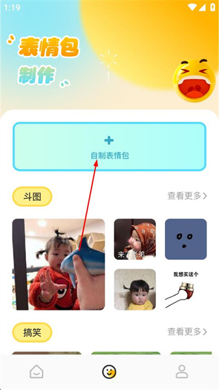 1、點(diǎn)擊底部表情圖標(biāo),進(jìn)入表情包制作界面。